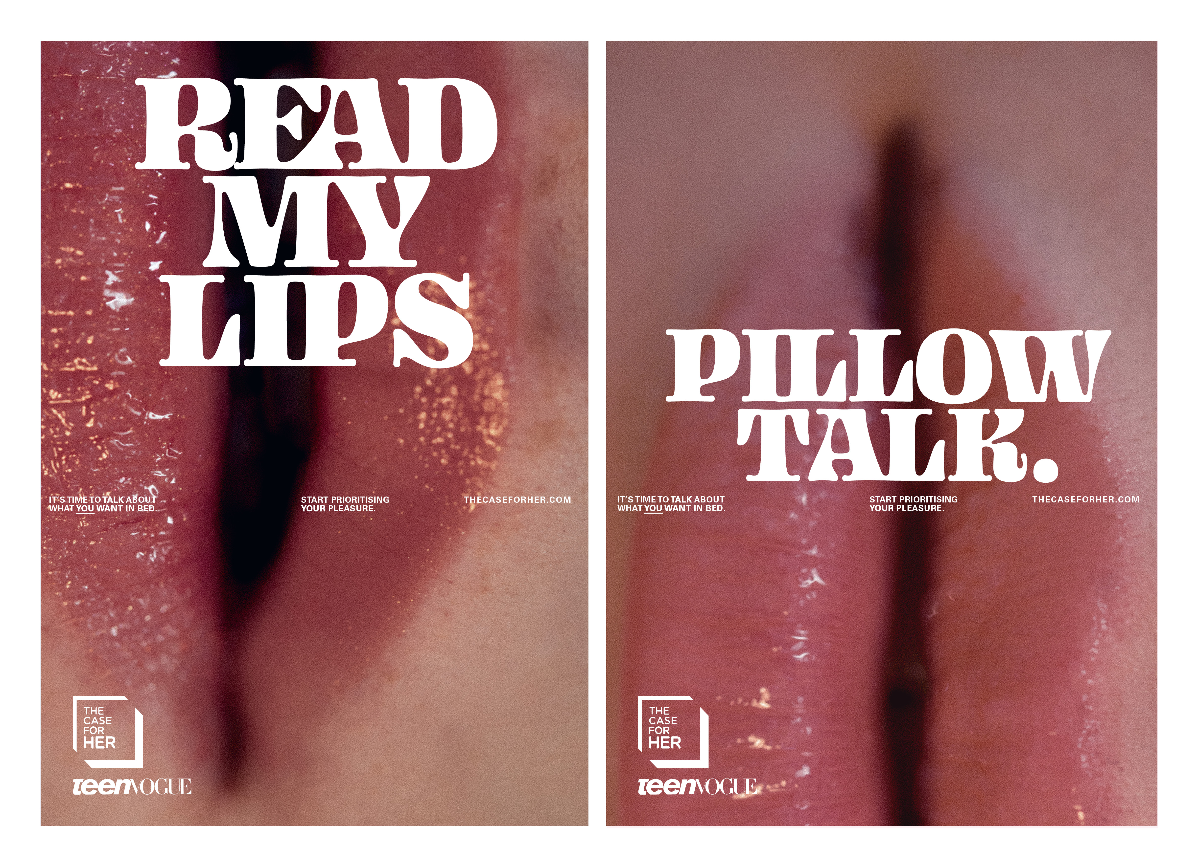 A D&AD Brief set by TeenVogue and TheCaseForHer to solve the female pleasure gap. The solution shows how lips and the vulva look similar, drawing a connection between communication and pleasure.