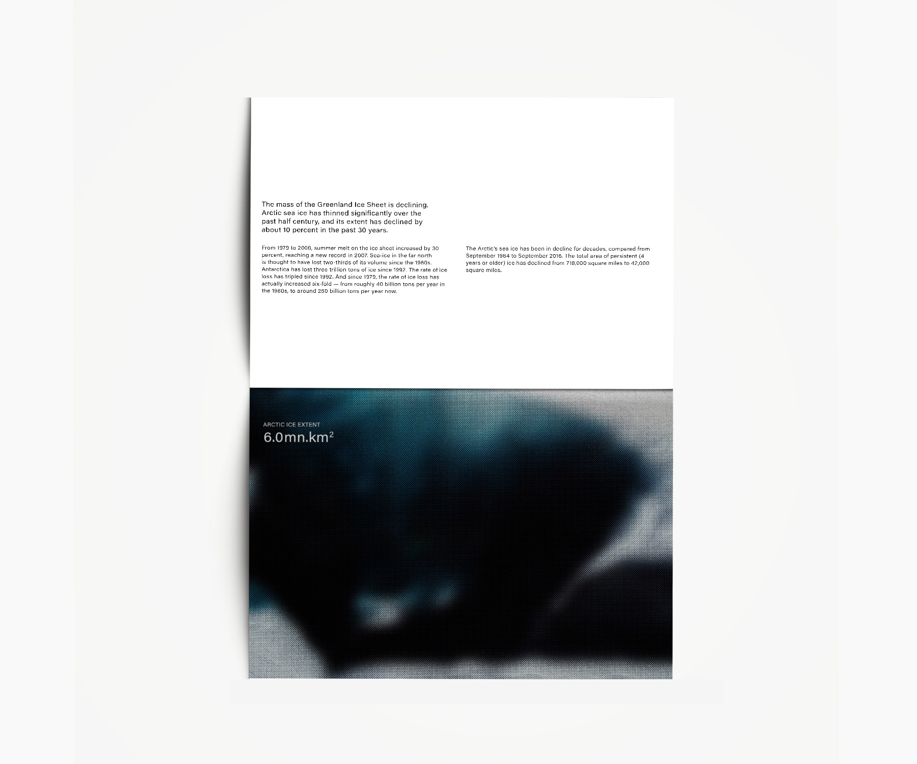 The brief was to produce a piece of design using an idiom. In the anthropocene age, the relevance of climate change has heightened; the response shows an editorial piece that physically shrinks in width every few pages. The typeface also thins as the reader progresses through the book.